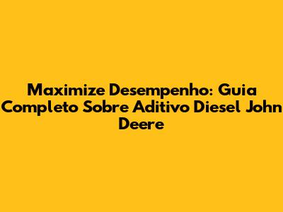 Maximize Desempenho: Guia Completo Sobre Aditivo Diesel John Deere