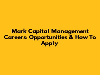 Mark Capital Management Careers: Opportunities & How To Apply