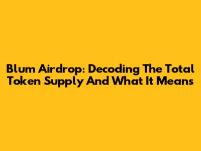 Blum Airdrop: Decoding The Total Token Supply And What It Means