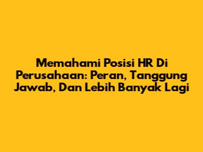 Memahami Posisi HR Di Perusahaan: Peran, Tanggung Jawab, Dan Lebih Banyak Lagi