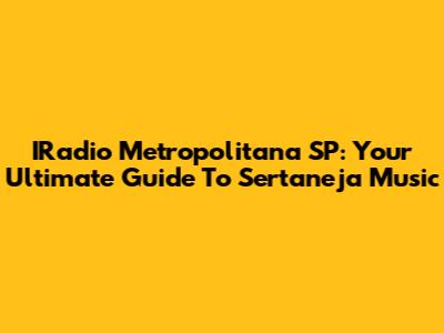 IRadio Metropolitana SP: Your Ultimate Guide To Sertaneja Music