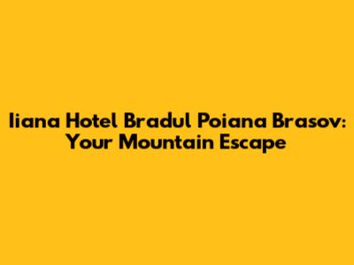 Iiana Hotel Bradul Poiana Brasov: Your Mountain Escape